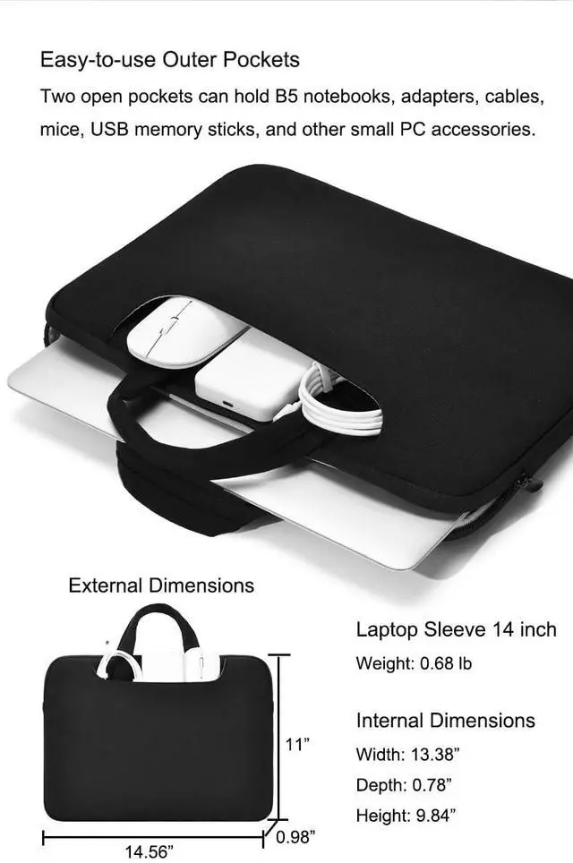 • Slim, Lightweight & Portable: This unisex laptop sleeve is slim and compact, weighing only 0.68 lb (14 version) and 0.77 lb (15.6 version). It can be used as a briefcase or tucked