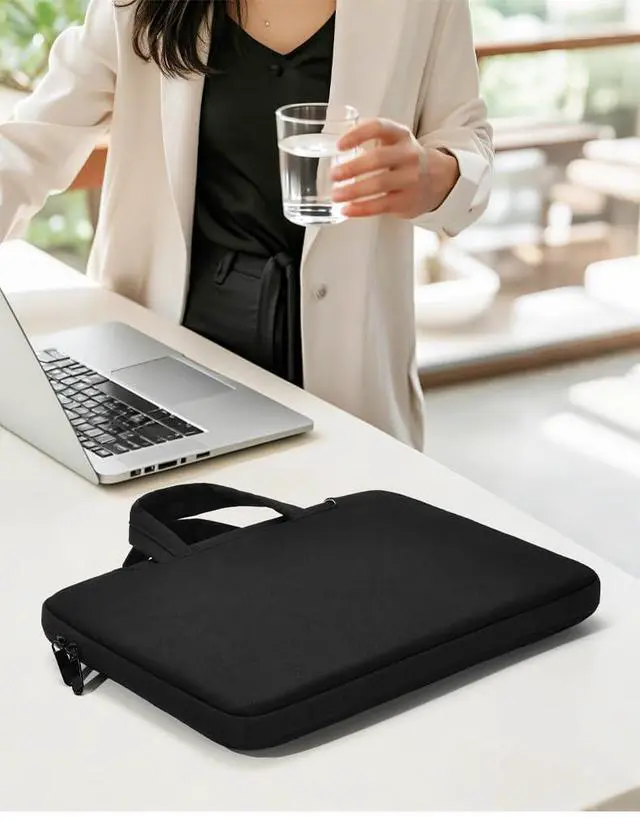 Protect your valuable laptop in style with this sleek and functional laptop sleeve designed for 14-inch to 15.6 -inch devices. The slim profile maintains a professional appearance while offering reliable protection for your computer during daily commutes, business trips, or travel. Thoughtfully crafted with water-resistant material, this briefcase-style sleeve helps shield your device from light splashes and unexpected weather. The convenient carrying handle makes transportation effortless, while multiple pockets provide organized storage for your essential accessories. The lightweight construction won't weigh you down, yet the durable design helps safeguard your laptop from bumps and scratches.