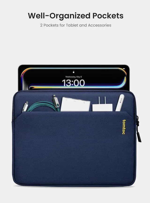 tomtoc Tablet Sleeve Case for 2024 13 Inch iPad Pro M4 & iPad Air M2, 12.9 -in iPad Pro M2&M1 6th/5th with Magic Keyboard and Smart Keyboard Folio, 12.4 -in Galaxy S9+/S9 FE+ with Accessories Pocket