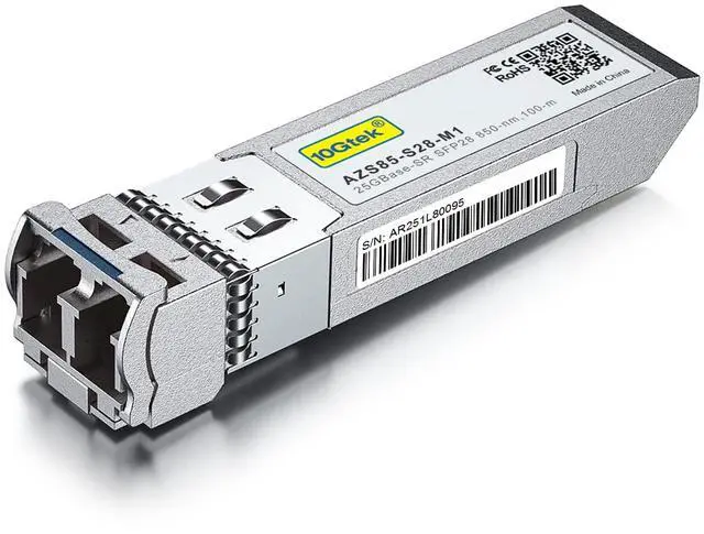 • 25G SFP28 SFP+ Transceiver, 850nm MMF, up to 100meters, 25GBase-SR Duplex LC MMF Optical Module for Intel E25GSFP28SR