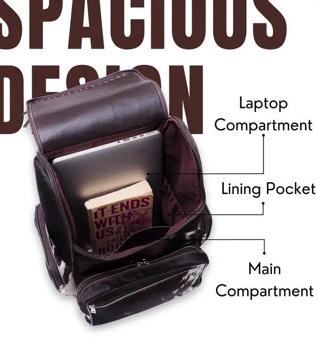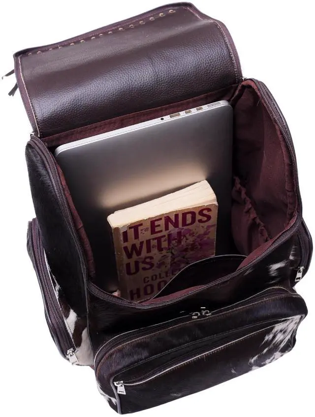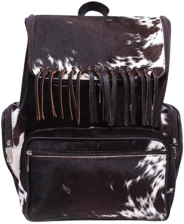 For those who prefer compact options, it also functions as a small diaper bag while maintaining maximum storage. Carry it comfortably as a shoulder bag or switch to the convenient backpack purse style when youre on the move. Made with genuine cowhide accents, this stylish cowhide backpack stands out as a fashionable yet practical choice. The natural texture of a cowhide leather bag paired with smooth finishes gives it a luxurious, Western-inspired look. Available in classic shades, the brown backpack is perfect for everyday wear, while the chic white backpack adds a modern touch to your travel gear.