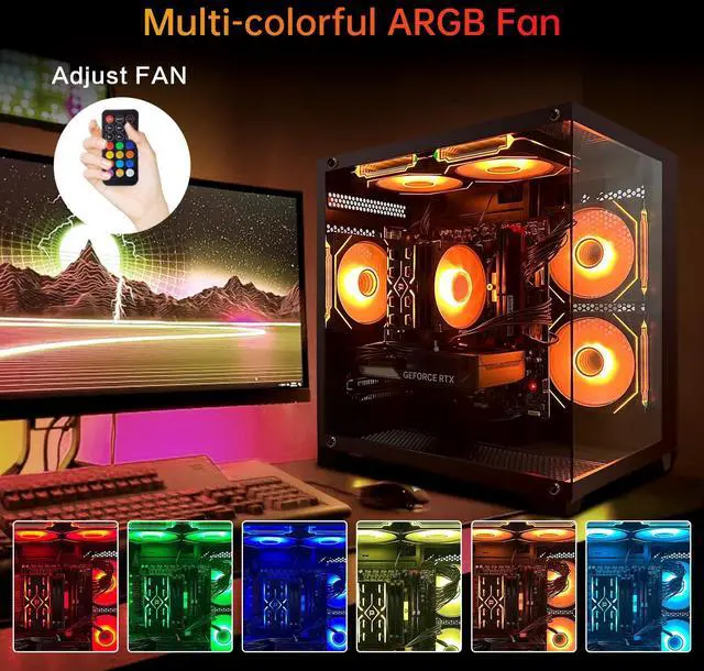 Stunning ARGB Design: The PC case comes with five ARGB fans, not only enhancing cooling performance but also adding an eye-catching glow to your gaming setup. This stylish design will make your gaming environment truly stand out.