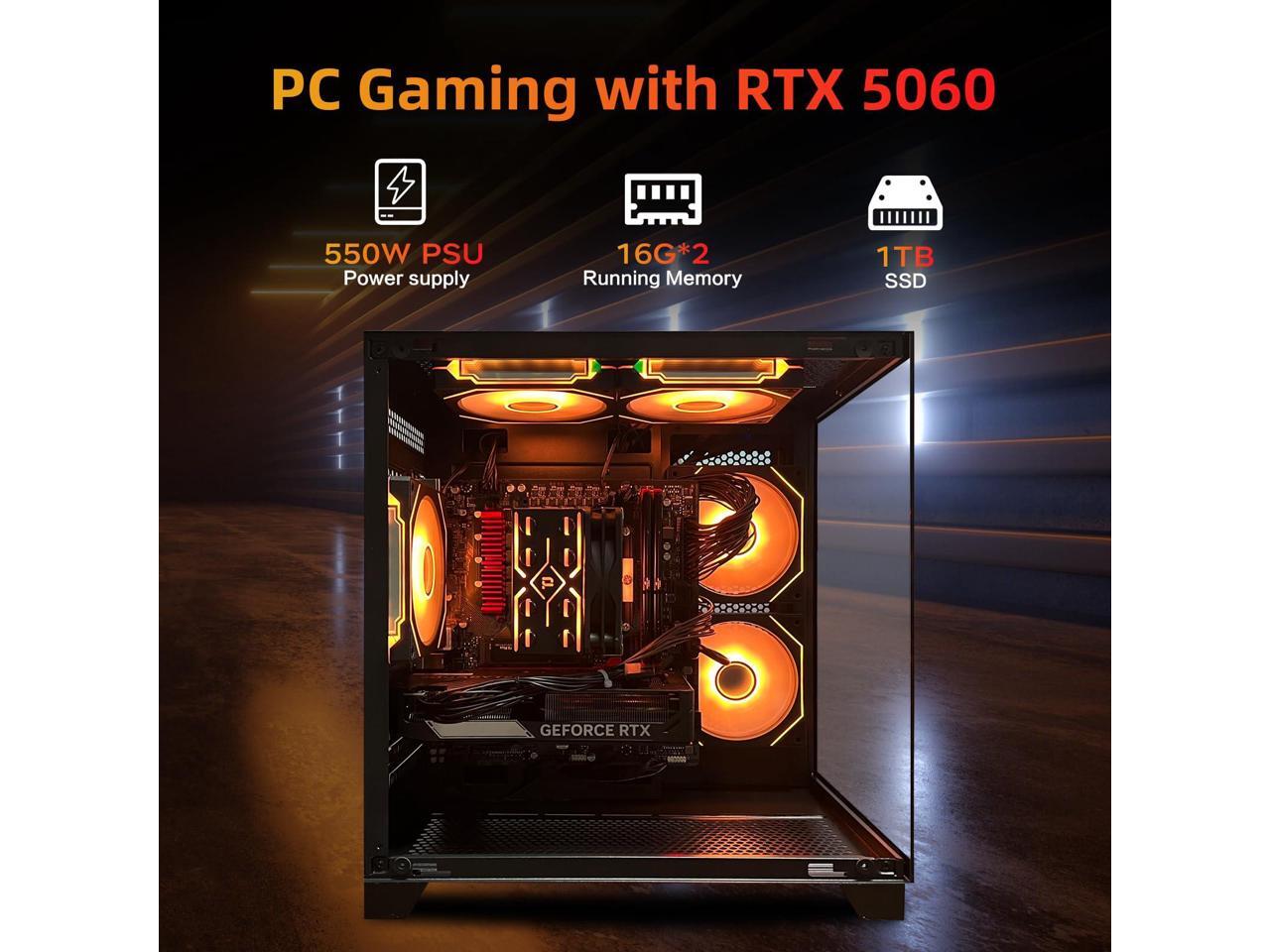 - Massive Memory and Storage: Equipped with 32GB RAM and a lightning-fast 1TB SSD, this prebuilt gaming PC offers ample space and rapid load times for your favorite games, applications, and files, making it a perfect choice for gamers and multitaskers alike.