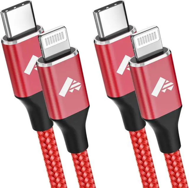 2 Pack 6 ft nylon braided USB C to iPhone Charger Cable red