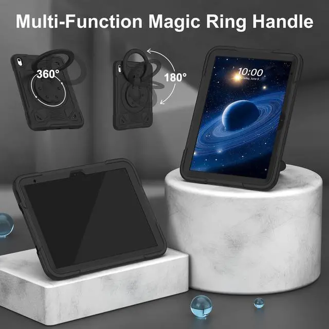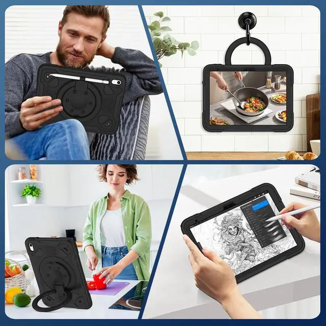 360°Rotating Stand & 180°Folds : iPad case 11th/10th generation with a 360°rotating handle that also folds 180°to give you multiple angles between 25-85 degrees of horizontal or vertical orientation,Also offers hand hold and hung on wall using by handle function,allow you use or carry much easier,perfect for a variet
