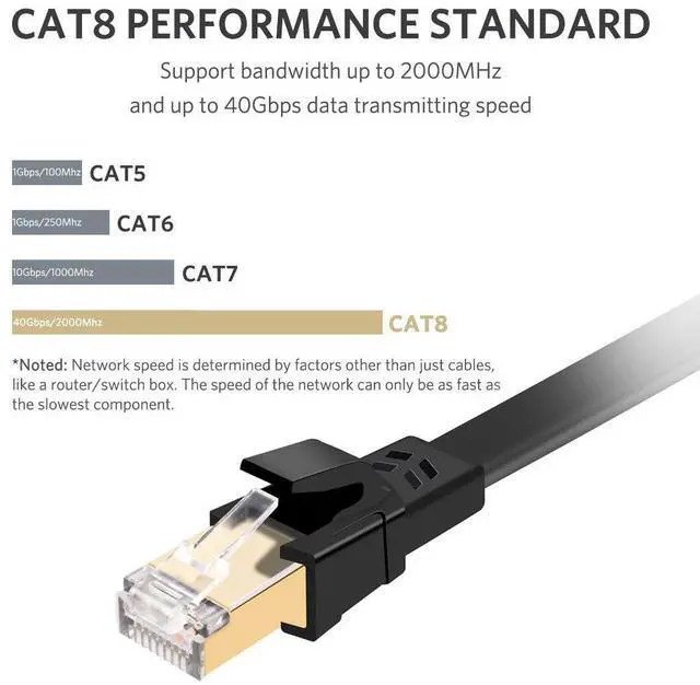 CAT 8 PERFORMANCE STANDARD: ATTMONO Cat 8 Ethernet Cable support bandwidth up to 2000MHz and up to 40Gbps data transmitting speed that is 4x the frequency of Cat 6A cable, so you can connect to your LAN/WAN segments and networking gear at maximum speeds and surf the net, stream videos, music and other data at high speed without worrying about waste time for waiting.