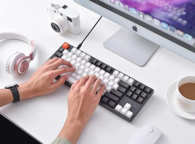 A tenkeyless layout (87-key) White backlight compact USB Type-C wired mechanical keyboard made for Mac and Windows. The ultimate tenkeyless keyboard that retains shortcut and arrow keys.