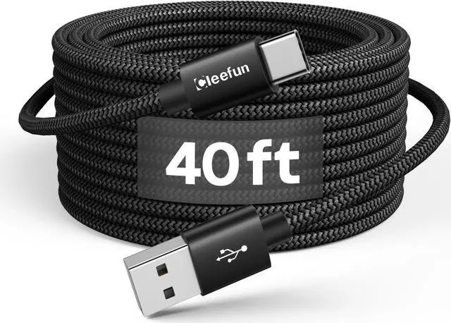 CLEEFUN usb c 40ft cable support all usb c devices supported QC 2.0 / 3.0 / 4.0 QC quick charge protocol, faster than most traditional usb to usb c 40ft.