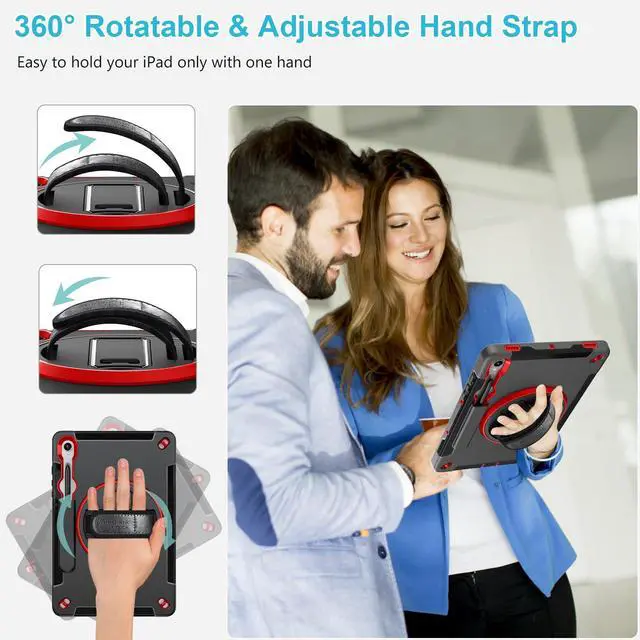 5.360 Rotation Kickstand allows you to free your hands and put your iPad on the table to use. Convenient for face-time, video conference, watching videos.