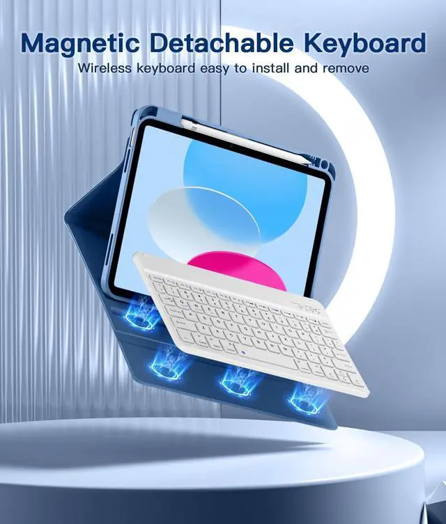 Beydoa for iPad 10th Generation Case with Keyboard 10.9 Inch- Magnetic Wireless Keyboard Case with Pencil Holder Stain Proof Folio Cover for iPad (A16) 11th Gen 11 Inch 2025/10th Gen 2022 - Blue