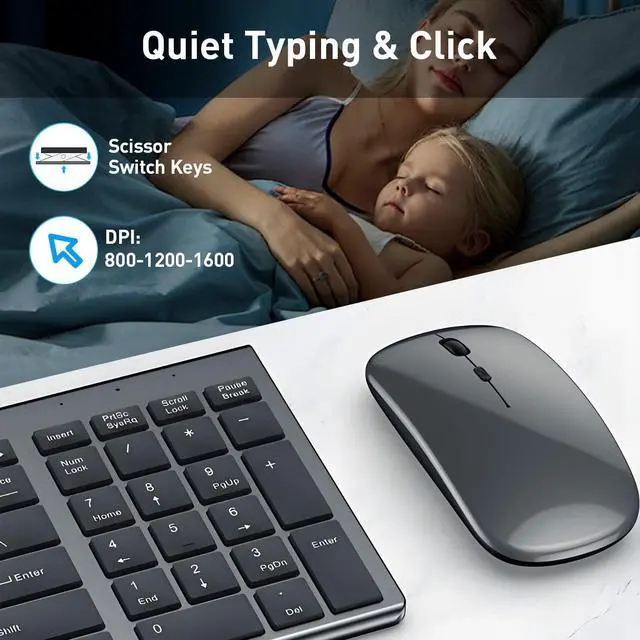 Quiet Typing and ClickBluetooth keyboard and mouse set is designed for quiet typing and click, scissor switch key structure offers comfortable and quiet typing experience.