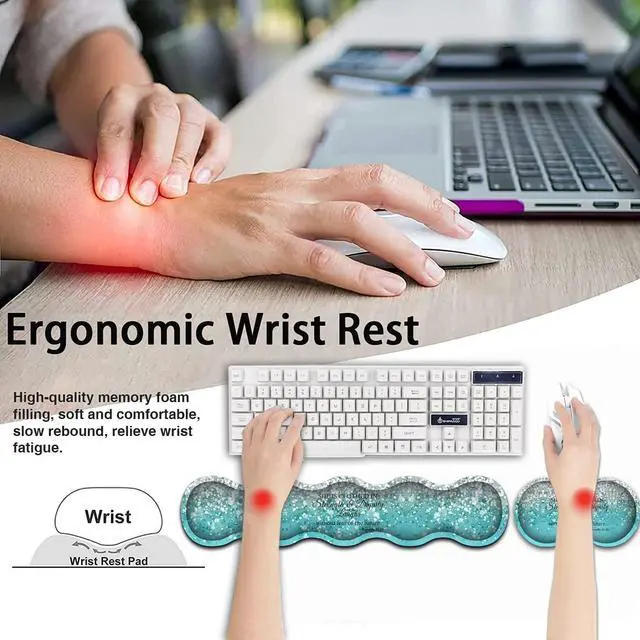 Ergonomic Wrist Rest Design:Using soft and breathable fabric and comfortable memory foam design, rest the wrist, raise the wrist to a suitable position, and reduce the pain of the wrist. The ergonomic height eliminates the friction between the wrist and the desktop, preventing unnecessary wrist fatigue and injury.