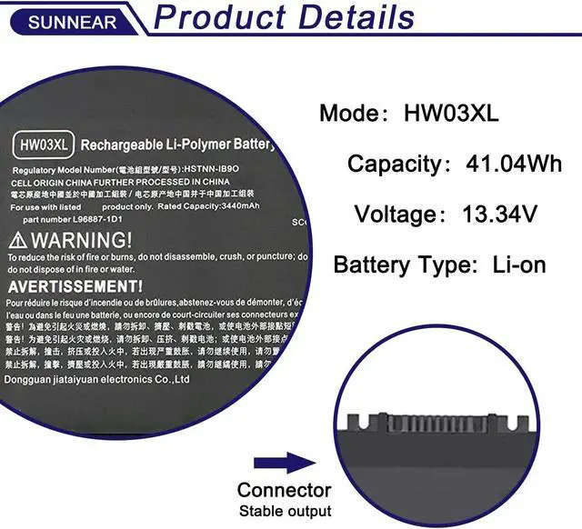 Compatible Part Number HW03XL HWO3XL HW03041XL HSTNN-IB90 HSTNN-IB9O HSTNN-LB8U HSTNN-OB2A L96887-1D1 L96887-421 L96887-AC1 L97300-005
