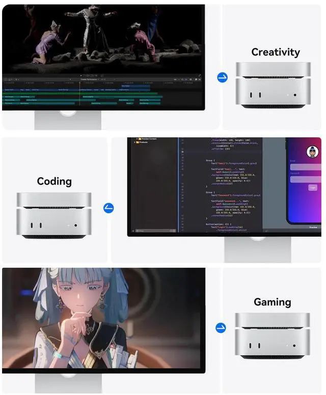 Clean & Smart Port Expansion 5-in-1Maintain a clutter-free desktop with a minimalist rear port layout: 1×M.2 NVMe PCIe 4.0 SSD enclosure, 2×USB-A 2.0 ports (480Mbps, ideal for keyboard & mouse), 1×3.5mm microphone input, and 1×3.5mm headphone jack. Powered via Mac mini or external adapterperfect for multiple device setups.