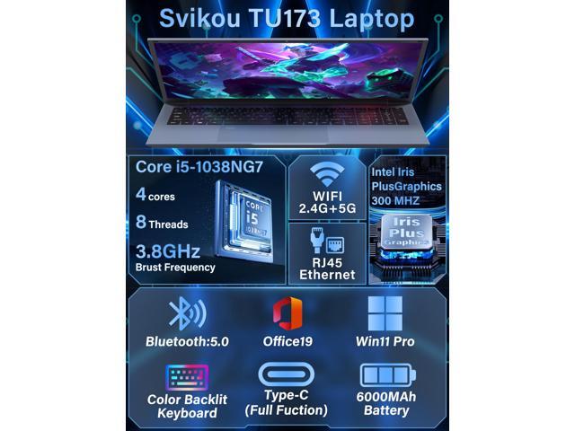 17.3" FHD IPS Blue Laptop, Core i5-1038NG7,16GB RAM,Win 11 Pro Laptop Business Computer, in tel Iris Plus Graphics, Fingerprint, Color Backlit Keyboard, Numpad, Type-C, WiFi 6, HDMI, RJ45 (512G SSD)