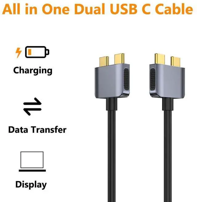 Tobenone Dual USB C Cable Docking Station, Length of The Wire is 70cm (Approximately 27.56 Inches), This Length Includes The Plug