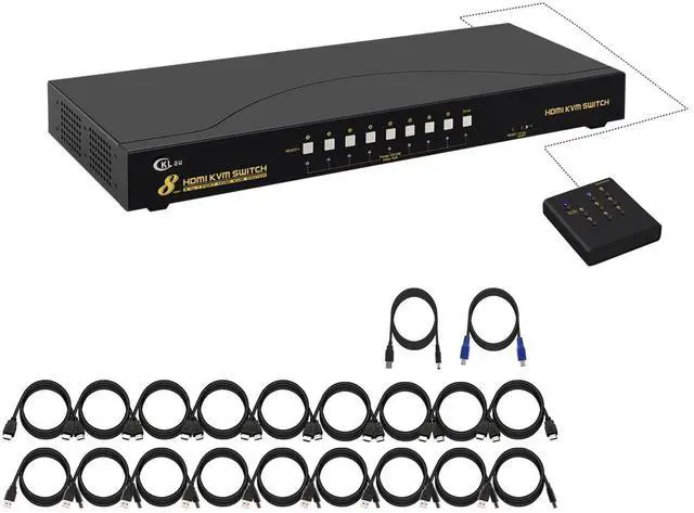 CKLau 4Kx2K 8 Port HDMI KVM Switch with Cables and USB 2.0 Hub, Rack Mount KVM Switch Supports Keyboard Mouse Switching for Windows, Linux, Mac, Debian, Ubuntu, Fedora, Raspberry Pi and Ubuntu