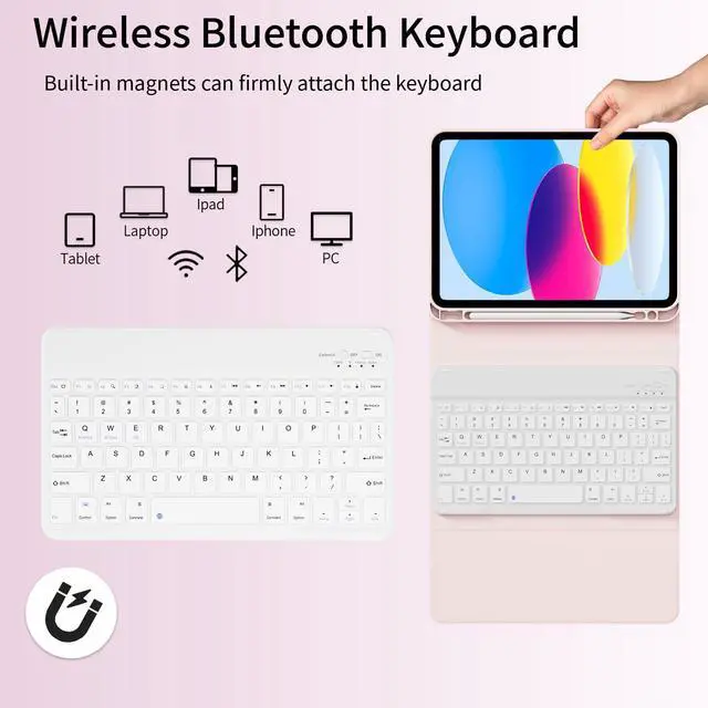 Slim Wireless Bluetooth Keyboard: This model is suitable for iPad 10/11 generation magnetic wireless keyboard protective case with lightweight design.The slim removable keyboard is attached to this iPad cover with keyboard magnetically (supporting Windows, IOS & Android System), let your ipad instantly become a portable laptop, perfect for working, typing, editing or watching videos, greatly improved your iPad productivity