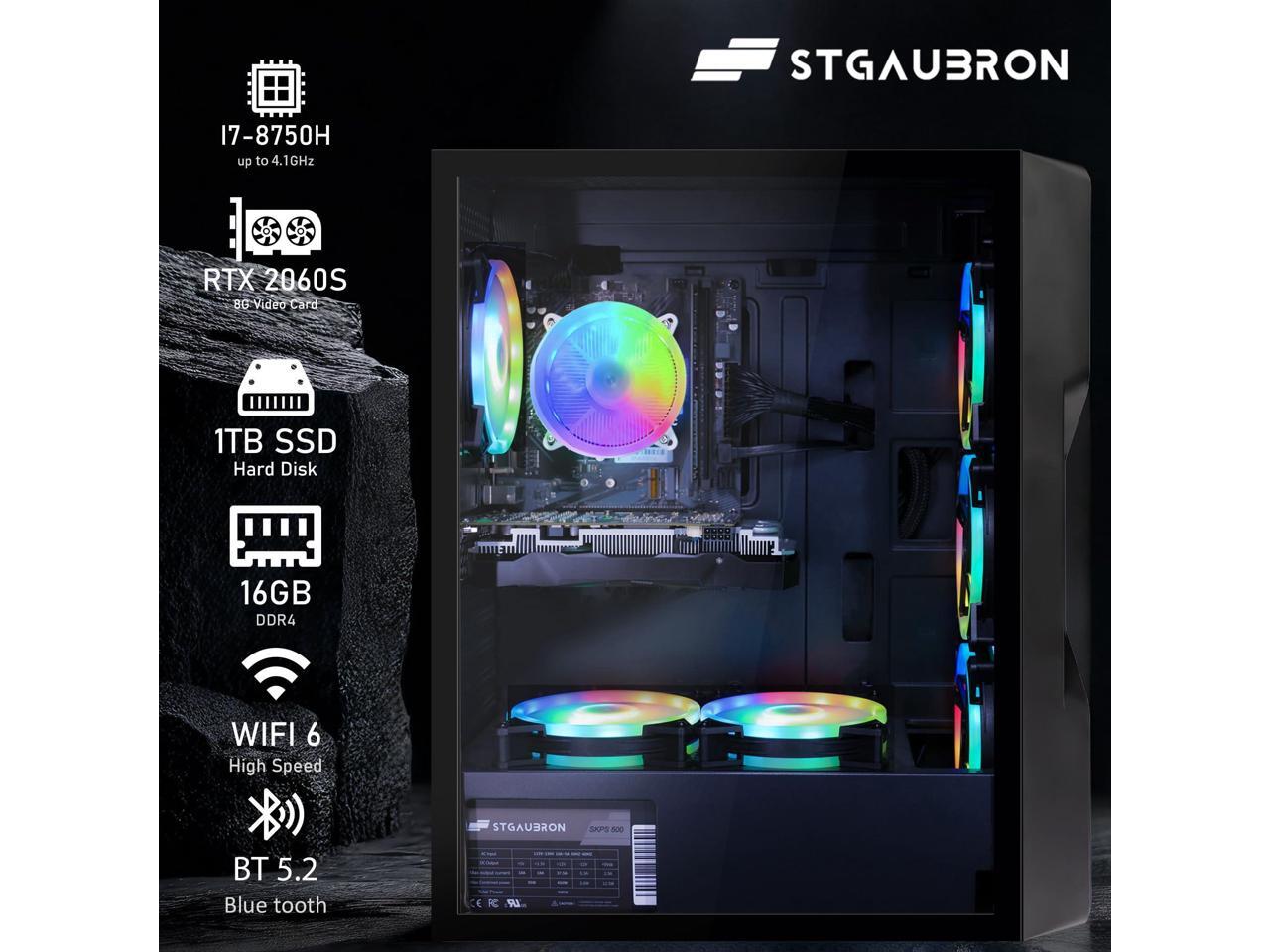 STGAubron Gaming PC Computer Desktop, GeForce RTX 2060 Super 8G, Intel Core I7 8th up to 4.1GHz, 16G DDR4, 1T SSD, WiFi 6 & BT 5.2, RGB Fan x6, Windows 11 Home