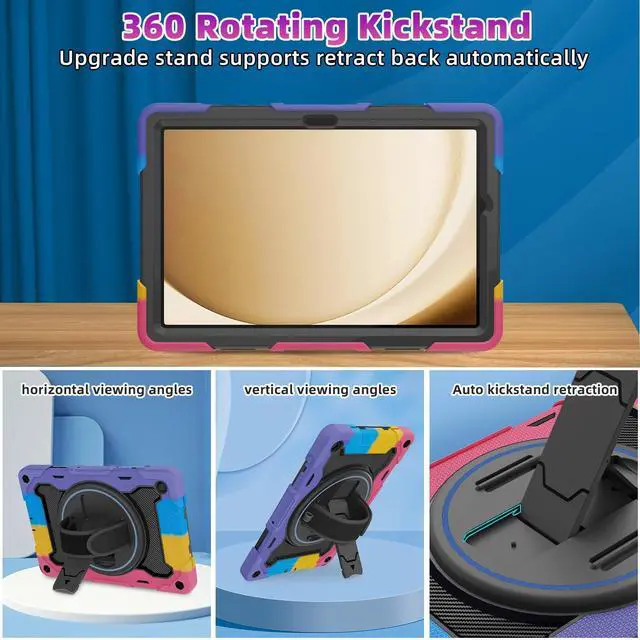 [Unique Kickstand Function] only one type of Samsung Case full body rugged protective durable rubber case supports auto kickstand retraction in the market, you only need to lift the kickstand up gently and then free your hand, done to open/close the kickstand, that allows you and your kids use it much convenience.There is a Stylus Pen Holder on the back to store your pen (Pencil is NOT included)
