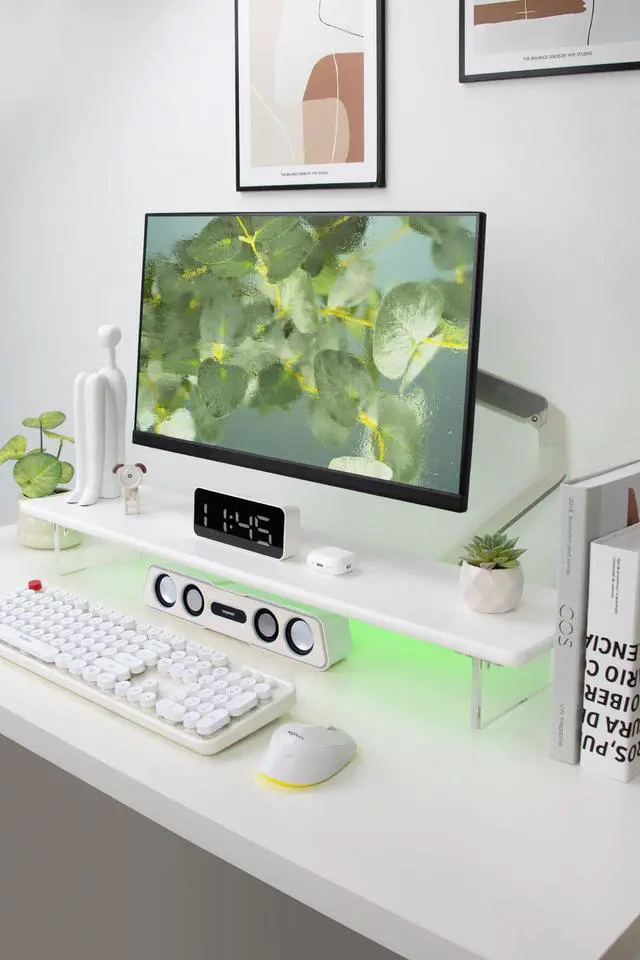 Sleek Bamboo + Acrylic Design: The mix of natural bamboo and clear acrylic creates a clean, floating look that adds elegance and visual lightness to any workspace.