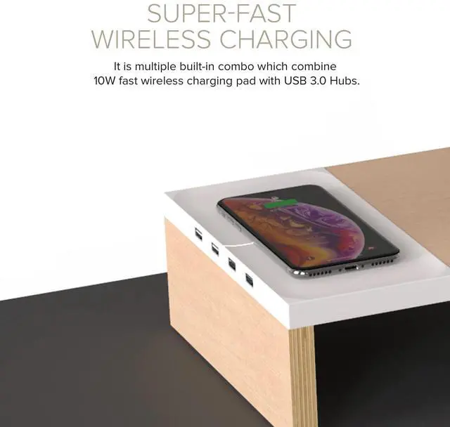 2 IN 1 MULTIFUNCTION It is multiple built-in combo which combine 10W fast wireless charging pad with USB 3.0 Hubs. Simply place your phone directly onto the wireless charging pad and your phone begins to charge.