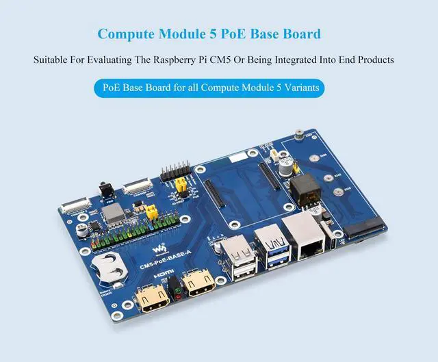 Compute Module 5 PoE Base Board ( Compute Module 5 IO Board with PoE Feature ) for Compute Module 5 Variants ( All Versions of CM5 ), suitable for evaluating the RPi CM5 or being integrated into end products.