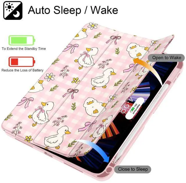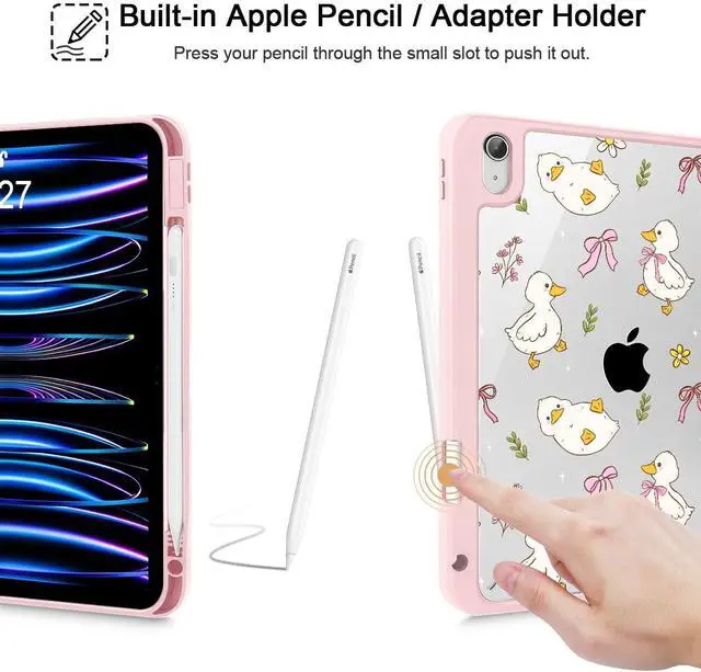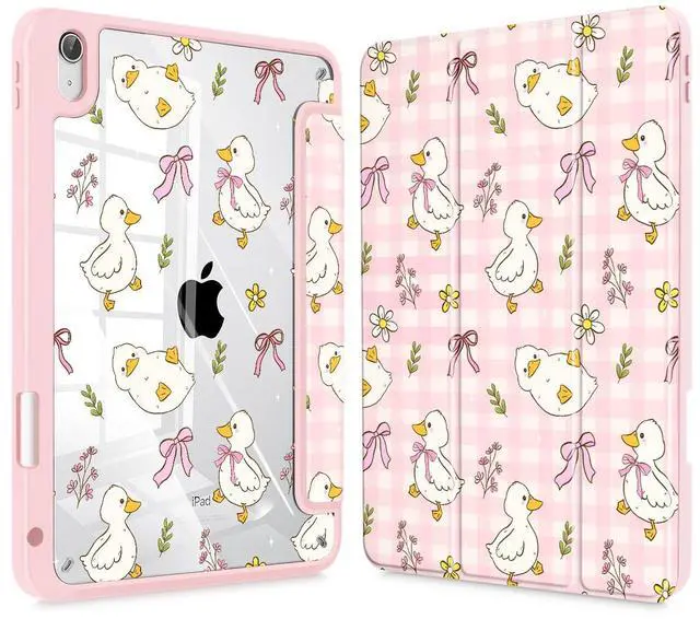 Lepeoac Case for iPad 11 inch A16 2025 Generation 11th / iPad 10.9 inch 2022 10th Gen, Buit in Pencil Holder with Shockproof Cover Clear Transparent Back Shell Auto Wake/Sleep, Duck & Bow