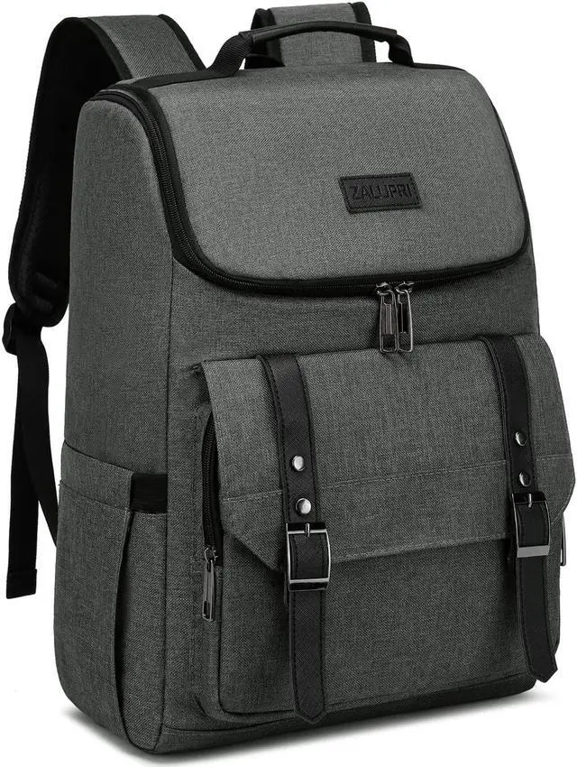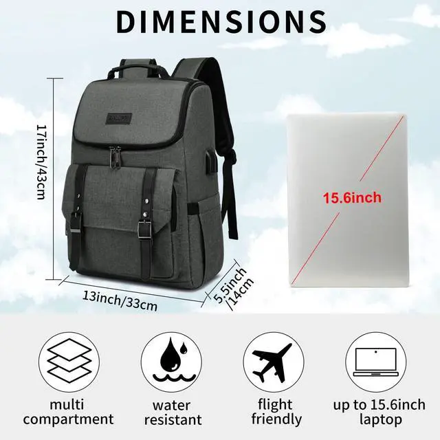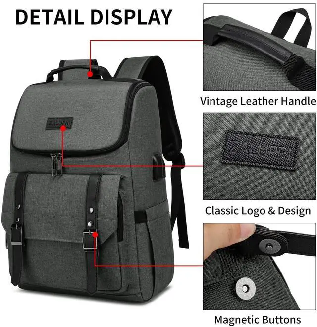 Work Travel Backpack Material: Vintage casual backpack made of water resistant and durable materials, sturdy metal zipper.High quality leather handle,allows you to carry it easily without stress.Side pockets are elastic, easy to fix various sizes of water bottles and compact umbrellas.