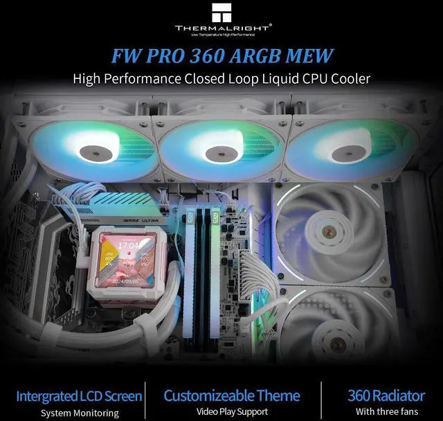 Thermalrlght FW PRO 360 ARGB MEW CPU Water Cooler,3 PWM Fans Water Cooling System with 2000PRM,for AM4/AM5&Intel LGA1851/1700, Magnetic Detachable LCD Screen with 320 * 320 Resolution