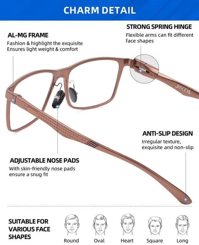 Al-Mg FrameJM men's women's blue light glasses are made of aluminum-magnesium alloy for excellent durability and lightness. The best rated blue light glasses is also resistant to oxidation and abrasion, extending the life of the product and allowing you to enjoy the protection of your blue light glasses for a long time.