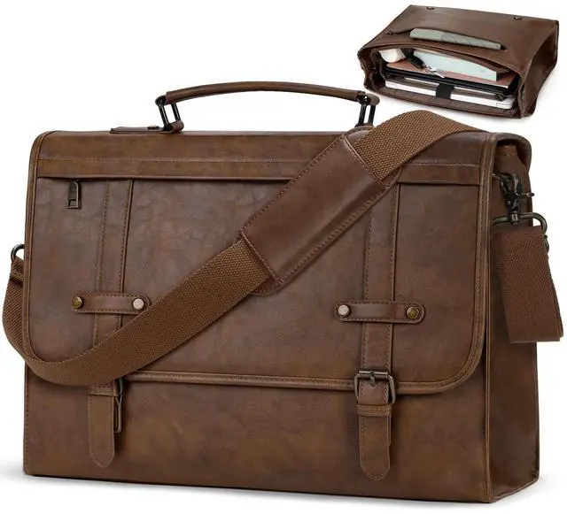 Premium Durable ConstructionCrafted from high-quality textured PU leather with a vintage cowhide-inspired design, this messenger bag combines timeless style with rugged durability. The water-resistant exterior is paired with thick nylon lining and a padded foam compartment, offering exceptional protection for your laptop against bumps and drops. Reinforced metal rivets on the base enhance wear resistance, ensuring long-lasting performance for daily commutes or business travel.