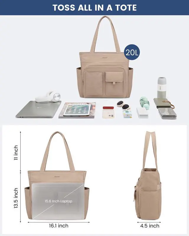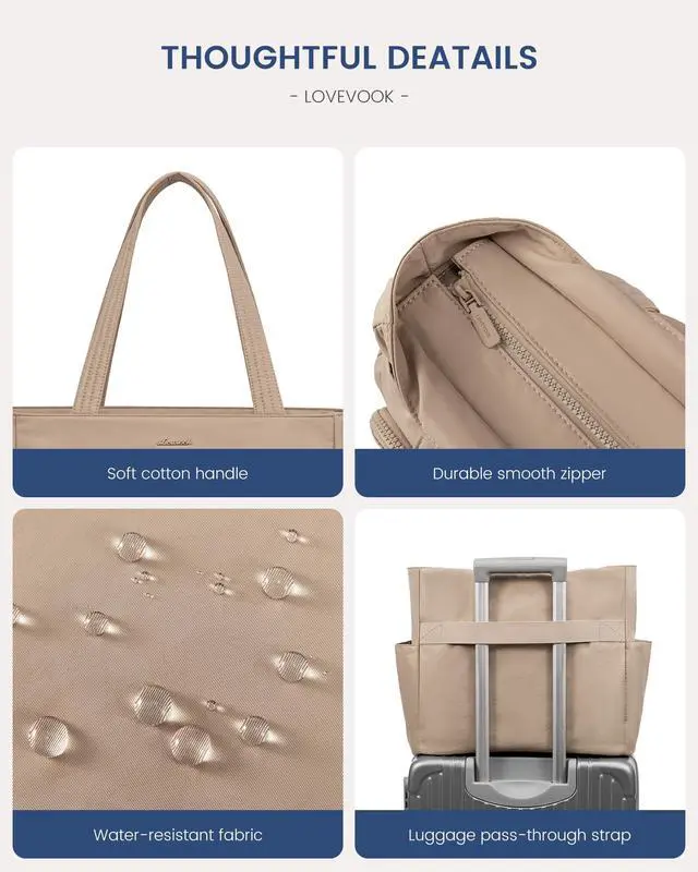Features: Multiple Pockets Our tote bag for women have 14 pockets and 20L capacity, whether you're teacher, nurse, or professional, this tote bag ensures everything organized. Durable & Water Resistant LOVEVOOK tote laptop bag made of durable, tear-resistant and water resistant polyester fibre to keep your items safe in any weather. Lightweight & Comfy Handle Work tote bags for women weighs only 0.5 lbs which can release your fatigue for commute or weekender leisure. The tote bag features padded cotton handles, making it comfortable. Versatile Our tote bag for women, laptop bag for women, work bags for women, work tote bags for women, teacher bag, travel tote bags for women, nurse tote bag, gym bag for women, diaper bag, are great for various occasions.