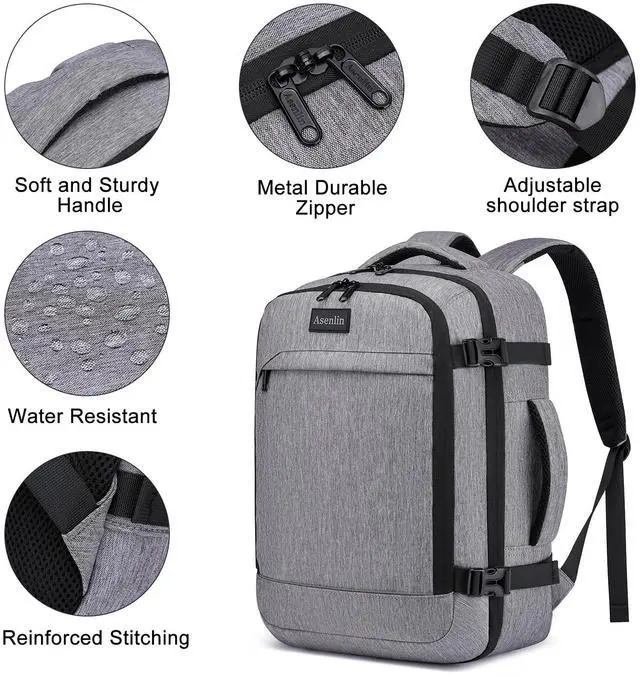 Asenlin 30L Travel Backpack for Women and Men,Fit 15.6 Inch Carry on Backpack Flight Approved LuggageWeekender Bag Water Resistant Laptop Backpack-Grey