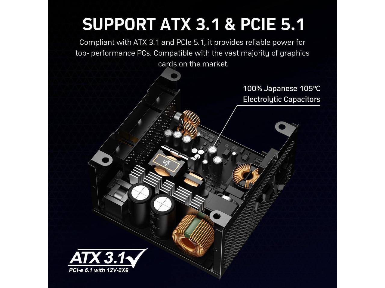 - Support ATX 3.1 & PCIe 5.1: Compliant with the ATX 3.1 standard to fuel high-performance PC components with stability, efficiency, and power spike resistance. Meanwhile, supporting PCIe 5.1 platform withstands 2x transient power excursions from the GPU.