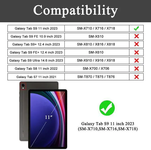 Designed for Galaxy Tab S9 11 Inch -- Exclusively designed for New Samsung Galaxy Tab S9 11" (SM-X710/X716B/X718U,2023 Released).