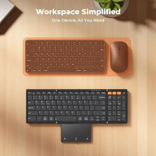 FULL-SIZE FEEL, POCKET-SIZED FREEDOMExperience uncomprimised desktop typing anywhere. This keyboard folds in half to a ultra-portable size, yet opens to a full 99-key layout with a numeric keypad and familiar key spacing for fast, accurate typing without the learning curve.