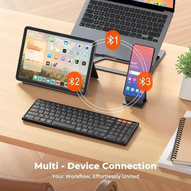TRIPLE DEVICE PAIRING, SWITCH SEAMLESSLY IN SECONDS Master your digital ecosystem. Connect to up to 3 devices simultaneouslylike your laptop, phone, and tabletand switch between them instantly with a dedicated key. Perfect for multitaskers who work across multiple screens.
