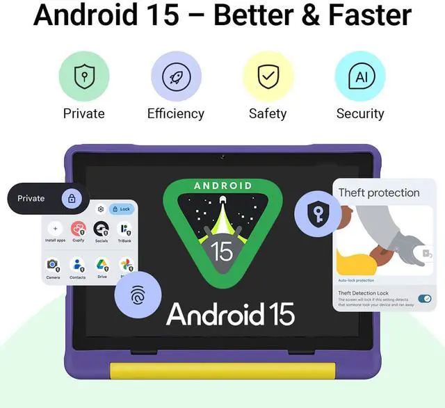 Kids Tablet, 10.1 Inch HD Android 15, 64GB Storage, 8GB RAM, Eye Protection Mode, 10-Hr Battery, Parental Shockproof Case - Tablet for Kids (Purple)