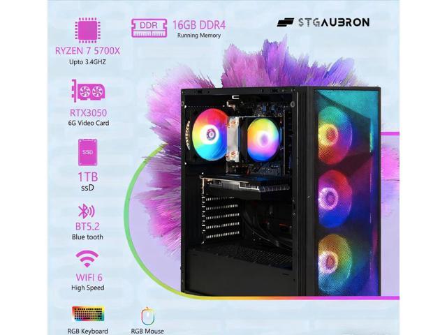STGAubron Gaming PC Desktop Computer, AMD Ryzen 7 5700X up to 4.6G, GeForce RTX 3050 6G, 16GB DDR4, 1TB SSD, WiFi 6 & BT 5.2, RGB Fan x4, Windows 11 Home