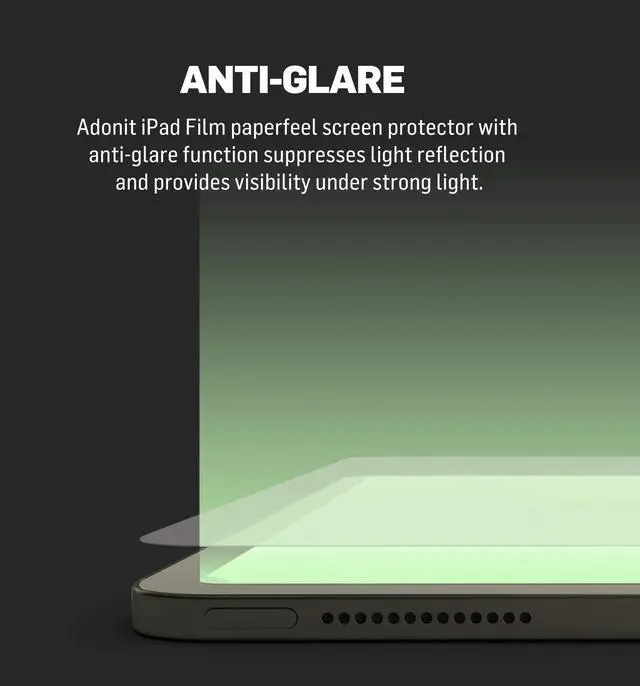 Anti-Glare: Adonit iPad Film paperfeel screen protector with anti-glare function suppresses light reflection and provides visibility under strong light.