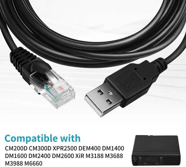 • Compatibility: This PMKN4147 PMKN4147A programming cable for CM200D CM300D XPR2500 DEM400 DM1400 DM1600 DM2400 DM2600 XiR M3188 M3688 M3988 M6660.