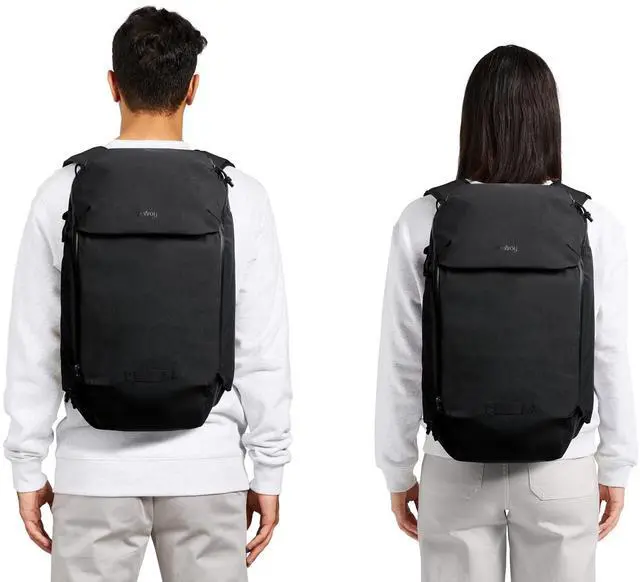 Measures 550mm x 350mm x 160mm / 21.7 inches x 13.8 inches x 6.3 inches; made from durable, water-resistant recycled fabric, with water-resistant coated zippers