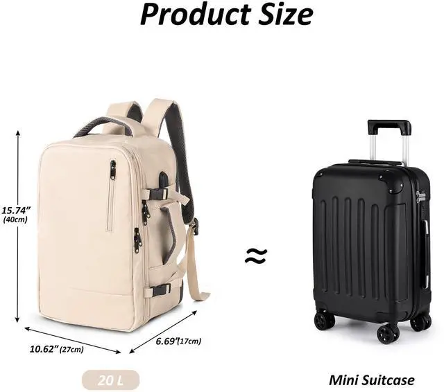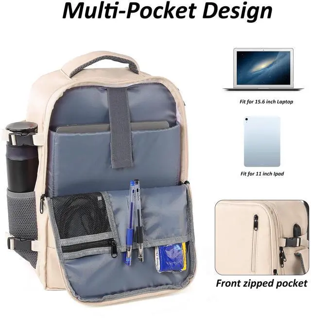 TANTOMI Travel Backpack for Women, 15.6 Inch Laptop Backpack Flight Approved, Small Carry-On Bags with USB Charging Port & Shoe Pouch, Casual Daypack on Airplane for Weekender Work Business, Beige
