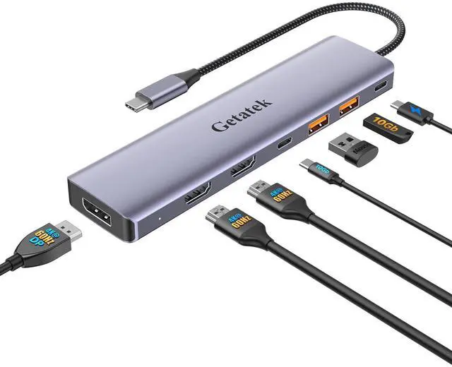Getatek 10Gbps USB C Hub, Laptop Docking Station, 7in1 Triple Display Docking Station with Dual HDMI, DisplayPort, PD 100W, 2 USB 3.2, USB C 3.2 Port for Dell Hp Lenovo Surface Windows