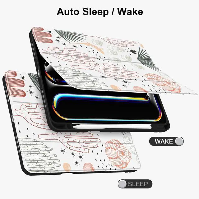 M4 Chip) Characteristic: 1. The case is made of premium PU exterior, microfiber lining and transparent acrylic back cover 2. Case automatically wakes your tablet when opened and puts it to sleep when closed 3. You can easily fold the cover into different positions to create a stand for reading, viewing, typing, or making FaceTime calls 4. Built-in pencil holder, grab your tablet pencil effortlessly whenever you want, easily carry your tablet pencil with your device 5. Easy to Installation and remove 6. Convenient to use all the controls and features