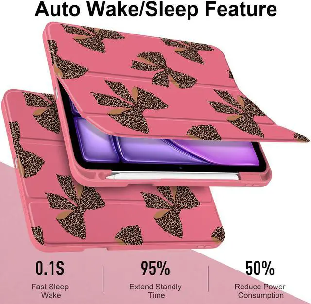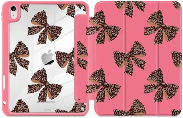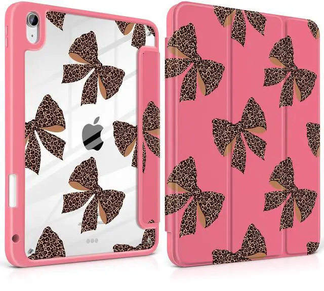 MEEgoodo Case for iPad Air 11 inch M3 2025 / M2 2024,for iPad Air 5th / 4th Generation Case 10.9 inch 2022/2020, Tablet Cover with Acrylic Transparent Back Shell, Leopard Print Bows