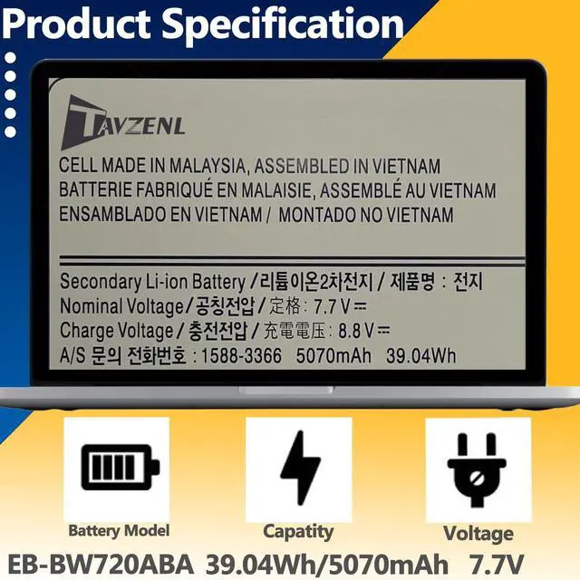 TAVZENL EB-BW720ABA 39.04W h Battery Replacement for Samsung Chromebook 4+ 15.6" XE350XBA Series 4 Chrome OS 11.6" XE310XBA Series Plus V2 XE521QAB Series Plus V2 XE520QAB Series 7.7V