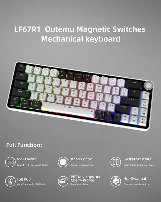Experience next-level performance with the Linkerfoo LF67 65% Magnetic Switch Mechanical Keyboard, engineered for gamers and creators who demand precision, comfort, and customization. Featuring advanced Outemu Magnetic Switches, a Gasket-Mounted structure, QMK/VIA programmability, and Dynamic RGB lighting, this keyboard delivers an unparalleled typing and gaming experience.