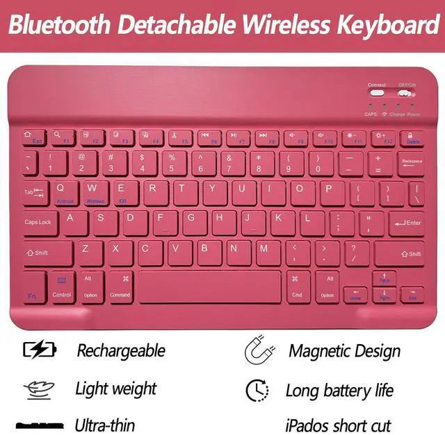Detachable Wireless Keyboard: This detachable Bluetooth keyboard can be magnetically attach to the iPad protective case and can be removed when not needed. Ergonomic keys with rebound function to reduce noise for a comfortable typing experience